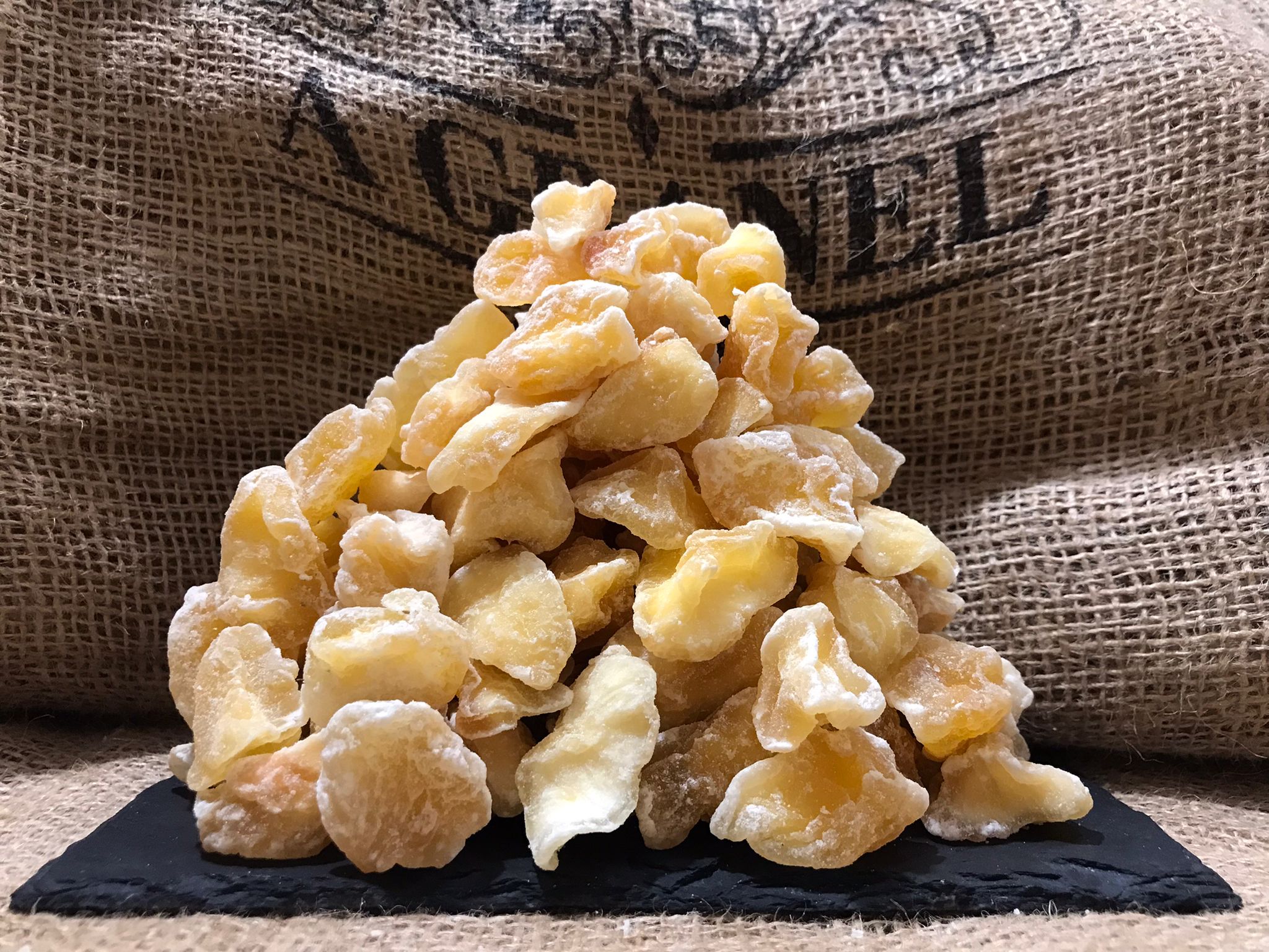 Se trata de manzana, previamente, desecada, deshidratada y cortada. De esta forma, no pierde sus propiedades, ya que quedan concentradas y potencia su sabor.